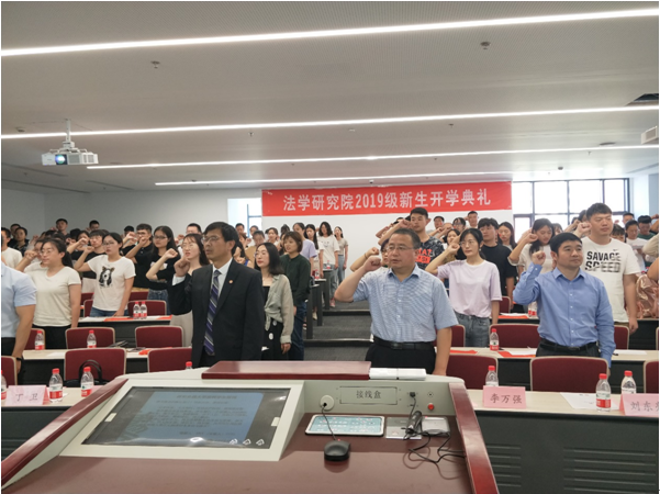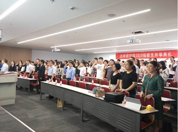 法学院党委书记王保民、副院长李万强、副院长丁卫,教师代表以及学院教师等参加开学典礼,共同见证法学院全体新生正式加入法学院的历史性时刻,法学院学生工作专职委员张乃钟主持开学典礼