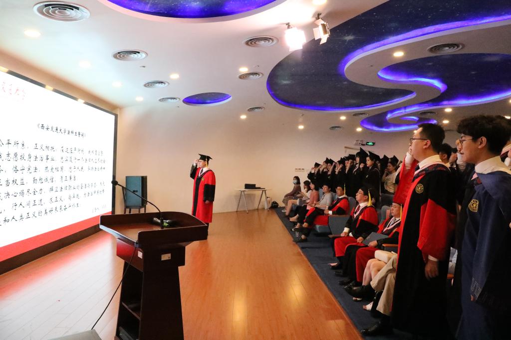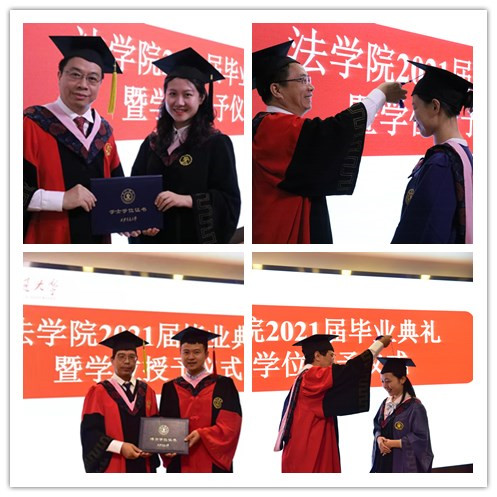 最后,全体毕业生齐唱交通大学校歌《为世界之光》。在室外合影留念时同学们高呼“法学院2021届全体毕业生祝愿母校西安交通大学明天更美好”!同学们依依不舍的声声祝福在四大发明广场久久回荡……