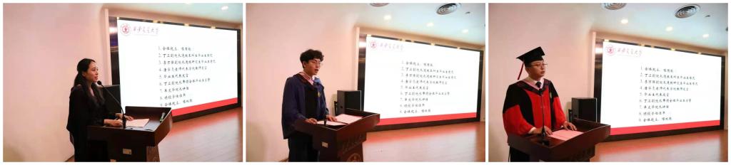 本科毕业生皮羽宏、硕士毕业生戴海洋和博士毕业生刘桢三位同学对学校、法学院和老师们的辛勤培养表达了感恩和感谢。本科毕业生皮羽宏说感恩遇见交大法学院、学院老师们以及身边的同学们;硕士毕业生戴海洋认为“西迁精神”是全体交大人的精神钙片,走到哪里,就能把“西迁精神”带到哪里;博士毕业生刘桢提到母校和法学院所教授的“爱国爱校、追求真理、勤奋踏实、艰苦朴素”的优良学风、研风以及“德法兼修”的人生目标终将陪伴受益终生。