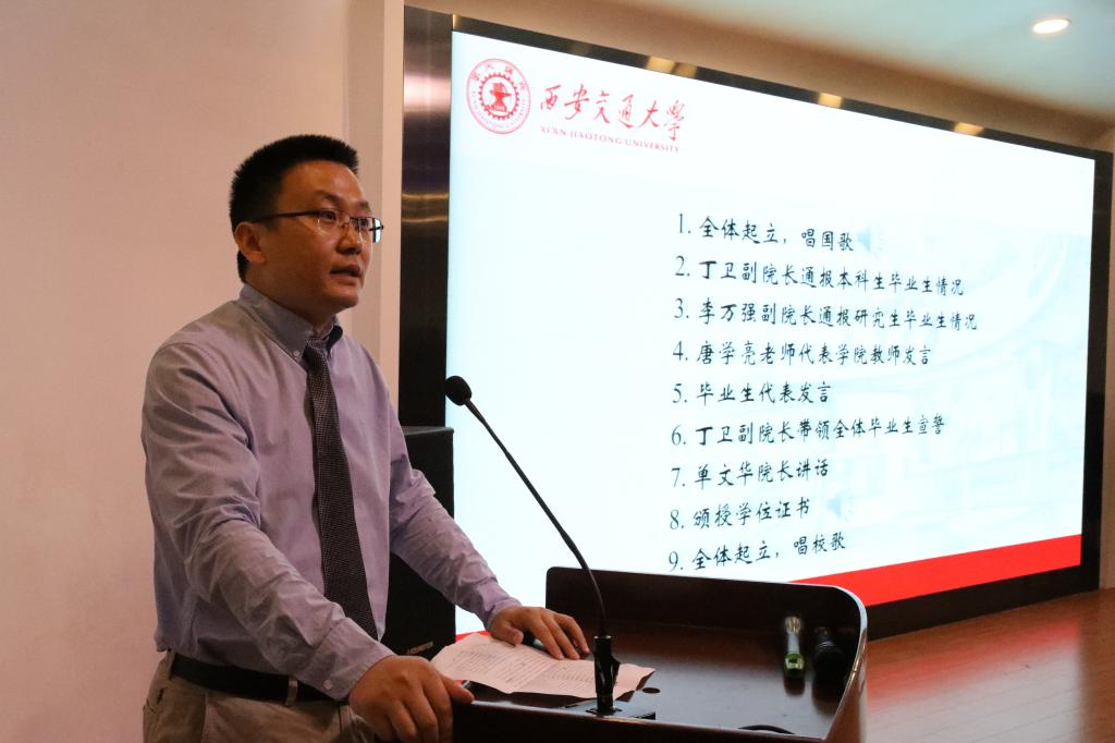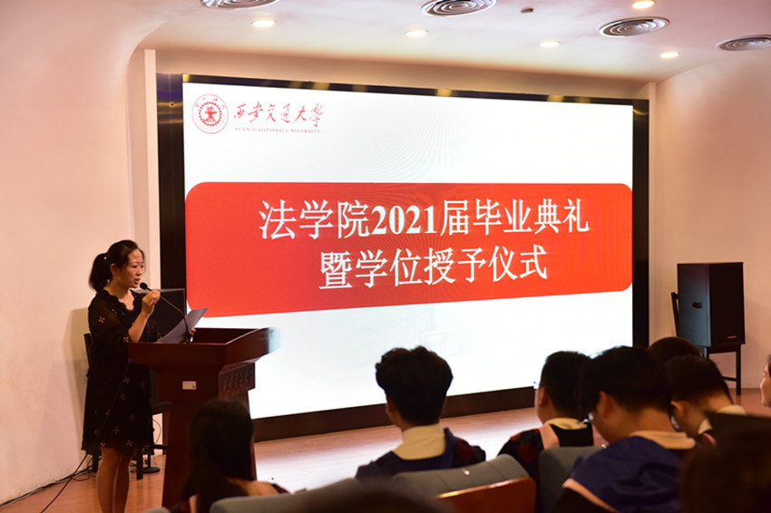 典礼上,单文华院长向法学院全体2021届毕业生致辞,他代表学院祝贺同学们圆满完成学业,感谢同学们在就读期间对学院发展所给予的大力支持,同时感谢言传身教,辛勤耕耘,培育优秀人才的全体老师。他指出,真正的法治是川流不息的人类生活生产中具体而鲜活的命题,法治是不断演进的过程。他希望毕业生能切实践行法治,不论将来从事什么工作、参与什么活动,努力尝试以法治的思维和法治的方式来应对,养成法治的习惯。他期望西安交通大学的法科毕业生能够创造第一等的事业,研究第一等的学问,砥砺第一等的品行,造就第一等的人才,为世界之光!最后,他欢迎大家常回母校看看!