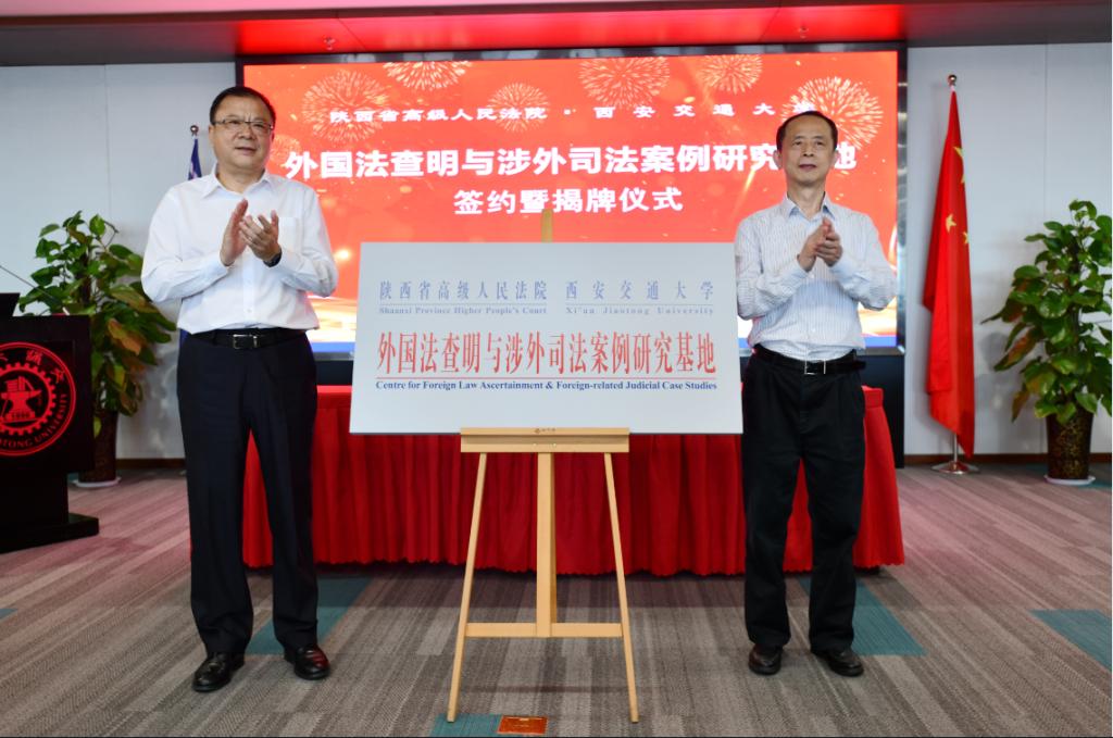 7月9日上午,陕西省高级人民法院—西安交通大学外国法查明与涉外司法案例研究基地签约暨揭牌仪式在中国西部科技创新港涵英楼举行。陕西省高级人民法院党组书记、院长李智,西安交通大学党委书记卢建军共同为研究基地揭牌。陕西省高级人民法院副院长巩富文、西安交通大学副校长席光签署共建协议。