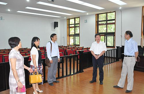 汇报会后,刘司长还在程校长和张处长的陪同下参观了法学院新建成的 “法律坊”。法律坊集模拟法庭、模拟国际仲裁庭、法律诊所等实践教学设施于一体,是我校卓越法律人才教育培养基地的重要载体之一。刘司长对我校的“法律坊”表示了高度赞赏。
