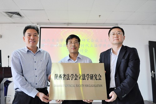 大会首先由陕西省法学会研究室主任魏清利宣读了“陕西省法学会立法学研究会”成立的批文。随后大会筹备组秘书长西安交通大学法学院吉兰湘老师就研究会筹备情况做了报告,宣读了研究会组成人员建议名单,会上一致通过了西安交通大学法学院副院长、博士生导师王保民教授为会长,西安交通大学法学院吉兰湘老师为秘书长、陕西省人大常委会法制委员会一处处长田文平等为副会长等的研究会组成人员。接着魏清利主任、刘人境副处长向研究会授牌,陕西省法学会立法学研究会正式挂牌成立。