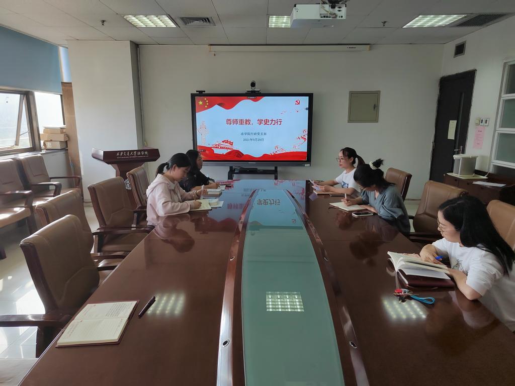 9月29日下午,法学院行政党支部以“尊师重教,学史力行”为主题召开专题组织生活会,学习习近平总书记给全国高校黄大年式教师团队代表的回信精神,贯彻落实习近平新时代教育思想。结合党史学习教育和“我为师生办实事”等工作,研讨加强师德师风建设举措。会议由行政党支部书记李晶主持。