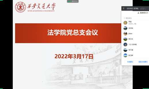 3月17日下午,法学院召开线上党总支会议,深入学习2022年全国两会精神。法学院党政班子成员、党总支委员参加会议,法学院党总支书记王保民主持会议。