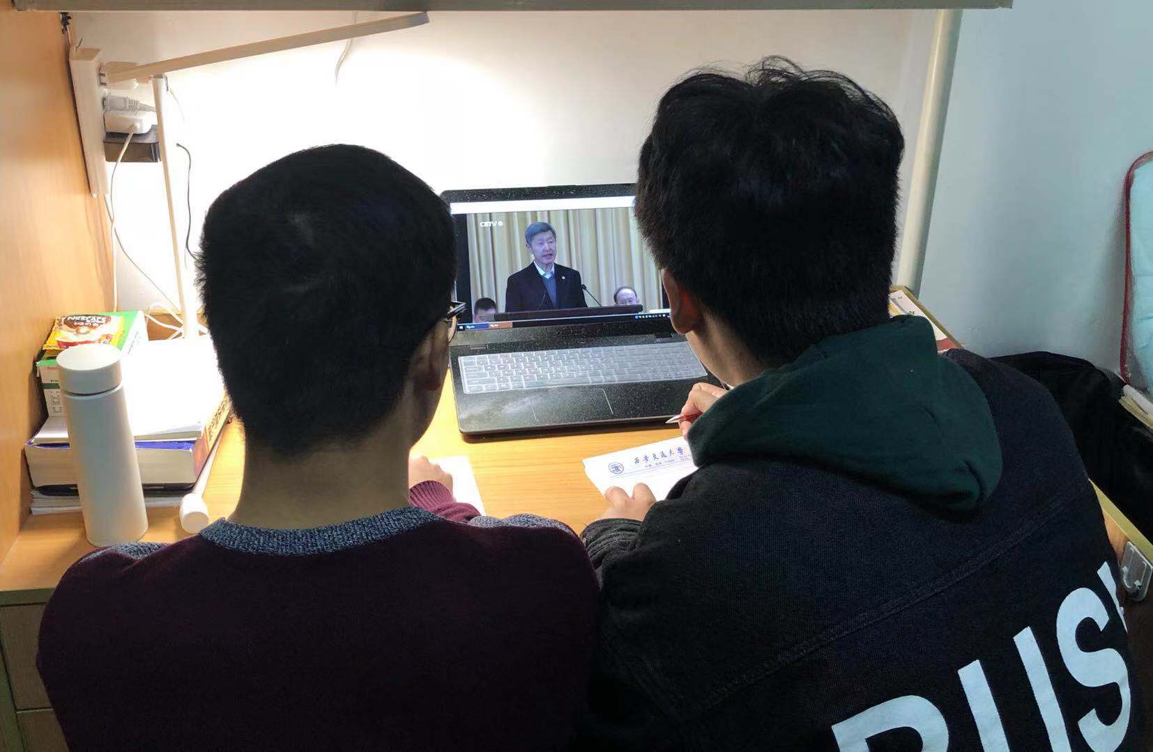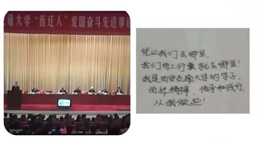 11月6日下午,由中央组织部、中央宣传部、教育部、中国科协和陕西省委联合主办的西安交通大学“西迁人”爱国奋斗先进事迹报告会在人民大会堂举行。11月8日晚21:30,中国教育电视台一频道(CETV-1)播出报告会录像,法学院各支部纷纷组织师生集中观看报告会。在家里、在宿舍、在公寓楼下师生们围在电脑前认真观看,不时有刚考完试匆匆赶回来的同学加入其中。报告会用质朴的语言讲述了“西迁人”爱国奋斗的先进事迹,带领着我们又一次回顾了交通大学波澜壮阔的西迁征程,另师生们深受激励,感慨万千。
