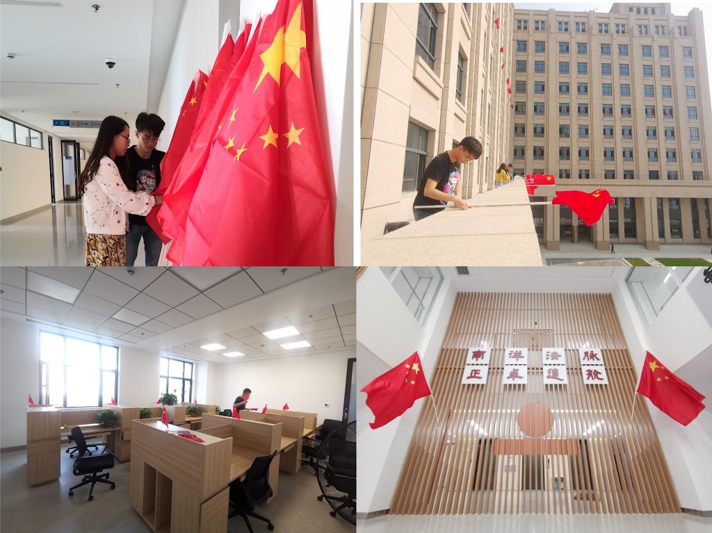 装点校园,表白祖国。9月27日上午,学院研究生党员积极参与布置创新港法学院研究院,大家分工明确、齐心协力,在老师办公室、学生工位和学院阳台悬挂国旗和宣传标语,为学院装添了不少节日的氛围,在中华人民共和国成立七十周年之际,向祖国母亲表达自己的爱意。作为首批入驻创新港法学研究院的党员队伍之一,法学院硕9158支部与硕9159支部联合开展了以“服务集体,从细节做起”为主题的志愿服务活动。组织党员在院内各办公室、教室以及研究生工位等区域内高效迅速地完成了协助搬运办公用品、安置桌椅、检测多媒体设备运行状态、打扫卫生的工作,为学院师生营造了良好的办公、教学、科研环境。本次活动有效培养了支部党员爱港爱院、服务集体的意识,也为日后支部开展更多惠及师生及社会的活动奠定了良好的基础。