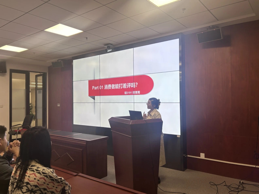 其次,各支部分别进行3·15案例分享。硕3191党支部积极分子蒋菁菁通过播放新闻视频和个人评述的形式,分享了“张某等人诉某商家网络侵权责任纠纷案”,向大家解答“消费者发布差评是否侵害商家名誉权”、“商家公开监控录像是否侵害消费者隐私权”、“商家公开信息是否侵害消费者个人信息权益”等一系列问题。硕3171党支部书记高露分享了“齐某某诉罗某某网络信息购物合同纠纷案”,并对法院的裁判结果进行总结:电子商务经营者应当遵守对消费者做出的有利承诺,对承诺的解释应按普通消费者的通常认知进行。