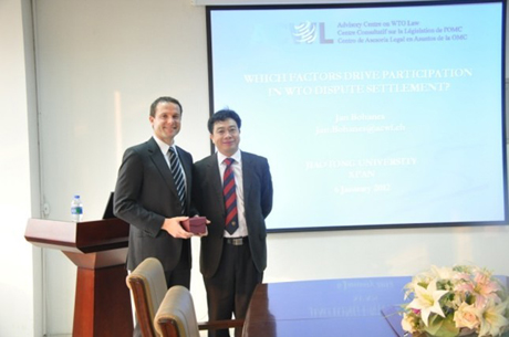 近日,WTO法咨询中心(The Advisory Centre on WTO Law,ACWL)Jan Hohanes博士来访西安交通大学法学院,并就发展中国家参与WTO争端解决的问题作专题讲座。