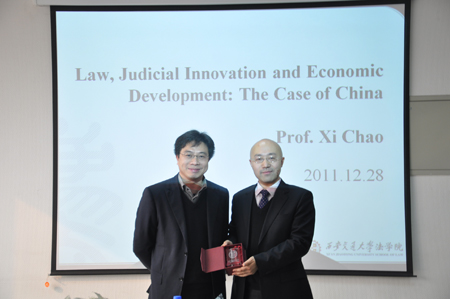 2011年12月26日至28日,香港中文大学法学院习超副教授访问西安交通大学法学院,并就“法与经济发展”问题为法学院学子作学术报告。