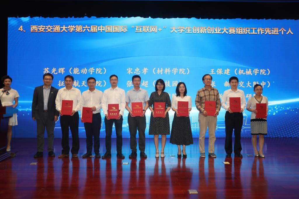 2021年5月10日下午,西安交通大学第六届中国国际“互联网+”大学生创新创业大赛颁奖典礼在主楼多功能报告厅举行,典礼上公布了我校本届大赛组织工作获奖名单,全校有5个单位获得校级先进集体,其中有2个文科学院获得该荣誉,我院是其中之一。同时,我院本科教学秘书王德霞荣获组织工作先进个人。
