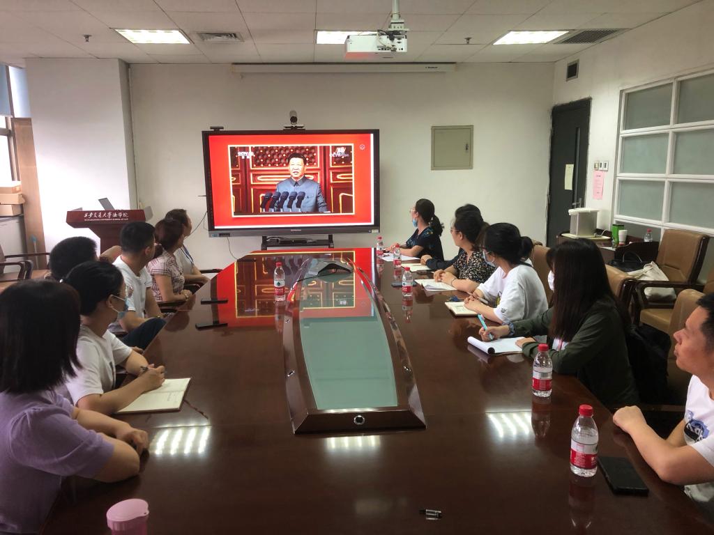 2021年7月1日上午,庆祝中国共产党成立100周年大会在天安门广场隆重举行。法学院在主E-910会议室组织党总支委员、党支部委员、师生代表集中观看庆祝大会直播。现场热烈的气氛另学院师生深受感染,大家纷纷表达激动的感情和诚挚的祝福!