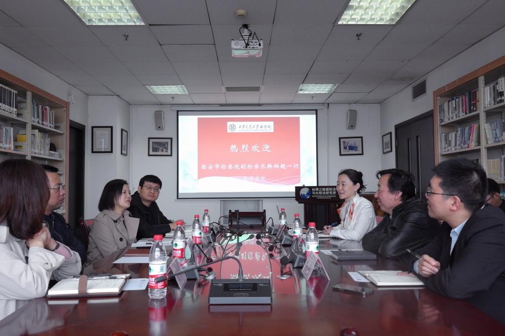 3月30日上午,西安市检察院副检察长韩柏超一行到访西安交通大学法学院,双方就公益诉讼研究、共建学生实践基地等问题进行了座谈研讨。