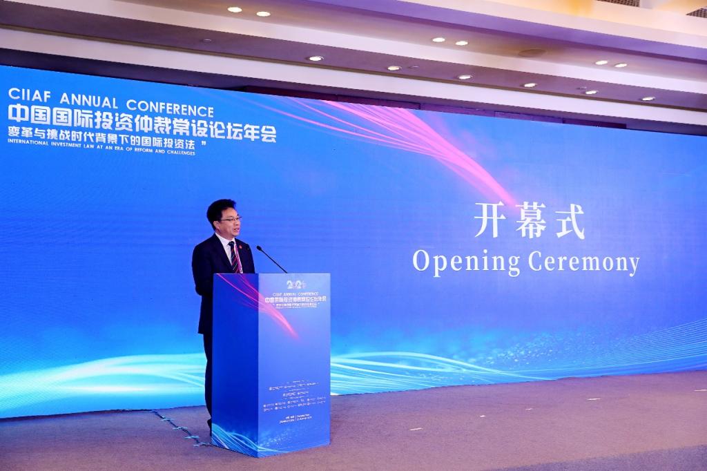 开幕式上,UNCITRAL秘书长Anna Joubin-Bret,商务部条法司二级巡视员于宁,贸仲副主任兼秘书长、常设论坛主席王承杰现场致辞,ICSID秘书长Martina Polasek视频致辞。西安交通大学校长助理、文科资深教授、法学院院长、常设论坛执行主席单文华主持开幕式。