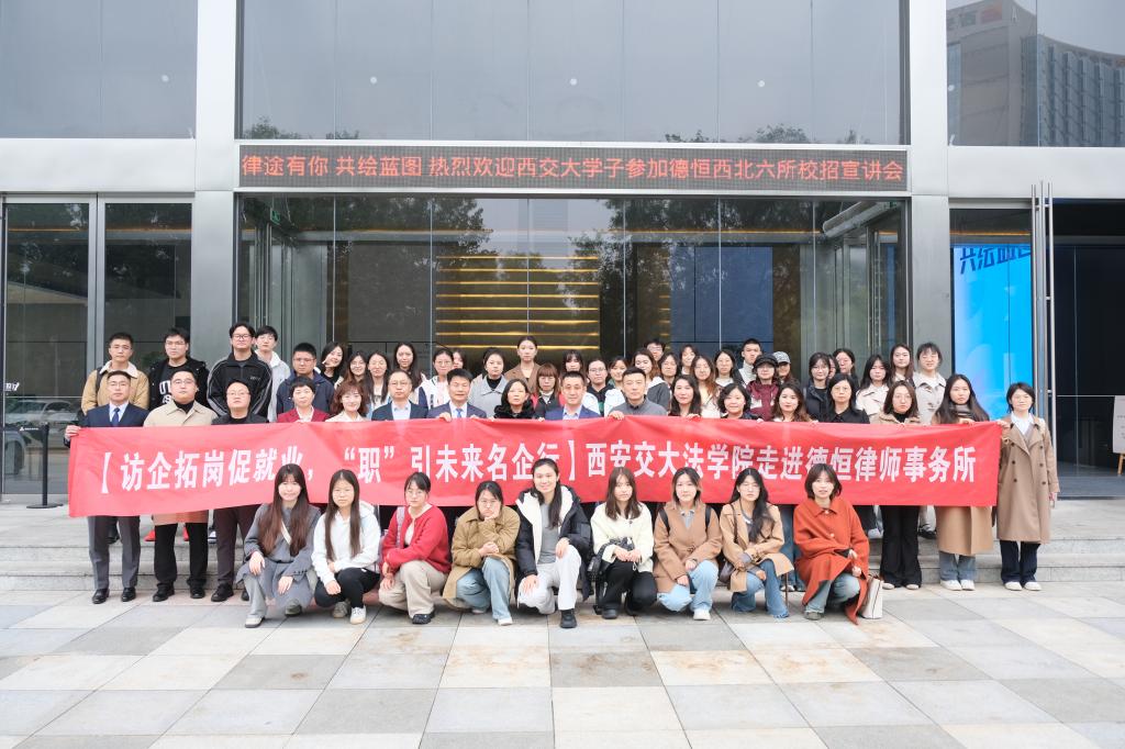 为贯彻落实教育部“高校访企拓岗促就业”专项行动,搭建用人单位与学生的交流平台,由西安交通大学法学院与德恒西咸办公室联袂组织的“律途有你,共绘蓝图”德恒西北区交大专场宣讲会在德恒西咸办公室举行。