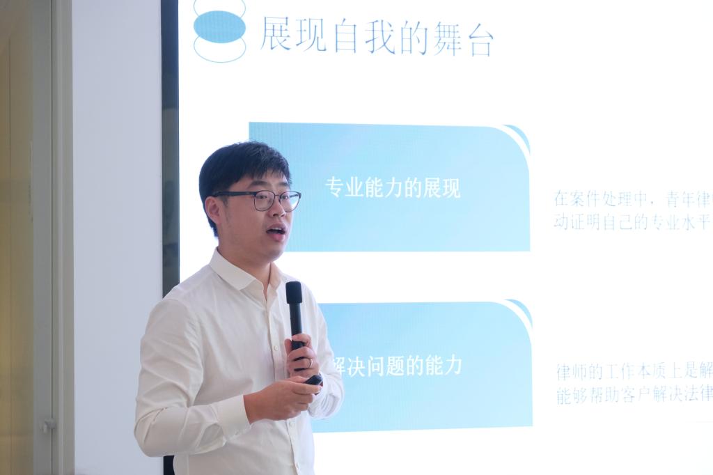 会议伊始,德恒西咸管委会主任、德恒西北六所协同发展联席会秘书长王奇律师介绍了德恒律师事务所在西北地区的协同发展和专业特色,他提到德恒在西北地区的法律服务市场中具有重要地位,并致力于建立一体化、专业化的法律服务网络。此外,王琦主任还询问了同学们对德恒平台的期望,介绍了德恒平台对青年律师成长和培训的重视,并强调了平台支撑和团队价值对个人成功的重要性。