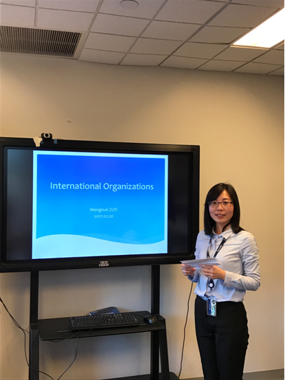 2017年1月3日至2017年3月3日,我校法学院博士研究生左梦雪赴联合国纽约总部大会与会议管理部(DGACM)进行了为期9周的实习。
