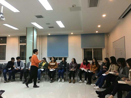 讲座刚开始时,大家还比较拘谨,闫老师为了缓解气氛、调动同学们的参与度和积极性,让大家做一个游戏,通过演示鸡蛋的一生来感受生命的前进历程。同学们在游戏中,经历着生命各个阶段,寻找着各个阶段的同伴,体验不同生命阶段的不同心理感受。经过游戏,大家在欢声笑语中打开了心扉,改变了最开始的拘束状态。
