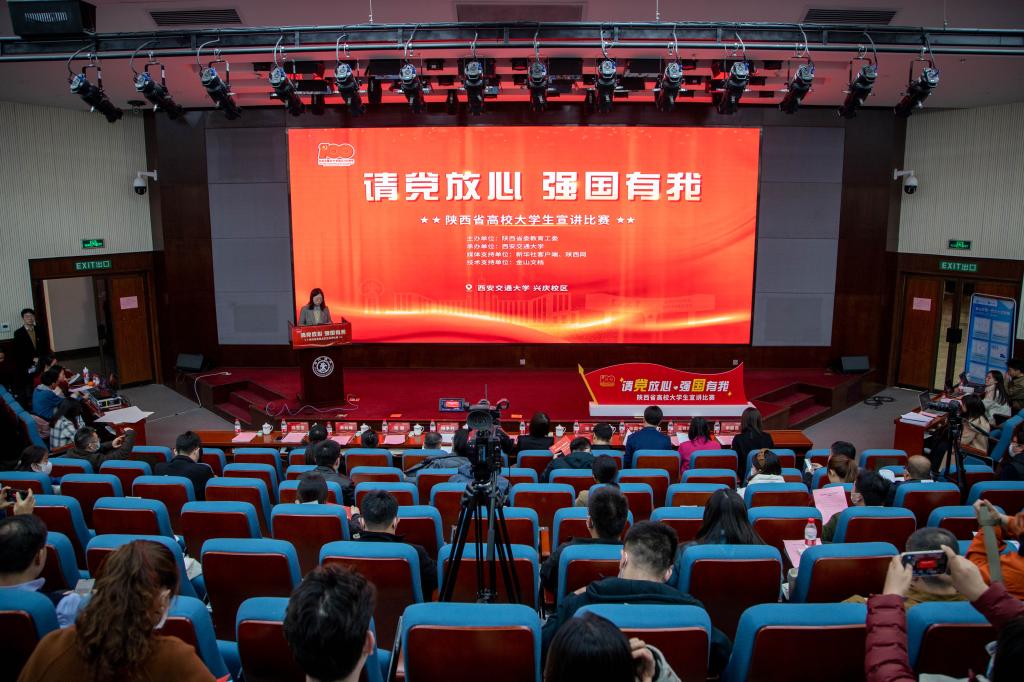 12月2日下午,在深入学习党的十九届六中全会精神之际,为了推进学习党的十九届六中全会精神及党史学习教育走深走实,陕西省高校“请党放心强国有我”大学生宣讲比赛现场总决赛于西安交通大学兴庆校区举办。本次活动由中共陕西省委教育工委主办、西安交通大学承办,新华社客户端、陕西网给予了媒体支持。