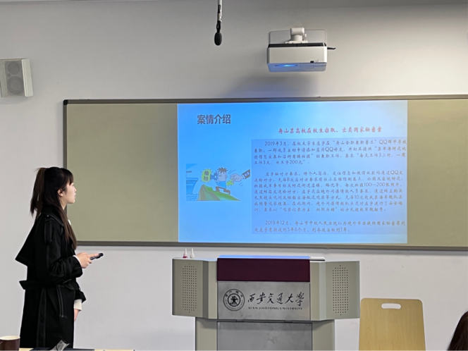 首先,孙千茜讲解经典案例,她选取了在校大学生庄某非法供密一案启示大家维护国家安全不仅是专门机关的职责,更是每一个公民和组织的义务。我们作为大学生,更要警惕境外间谍情报机关在网络上以求职招聘、学术研究、交友婚恋等各种名义为掩护,巧言令色,欺骗在校学生窃取、出卖国家秘密。