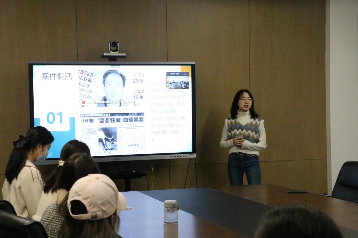 本期普法微课堂聚焦旷世大案“甘肃白银连环杀人案”。法学院马卓同学首先介绍了案件基本案情。从1988年至2002年间,高承勇在我国甘肃省白银市及内蒙古包头市连续杀害女性11名,作案跨度14年,最小受害人年仅8岁,手段残忍,极具隐蔽性,造成了巨大的社会恐慌。随后,马卓同学就罪犯的家庭背景、生活环境和作案习惯等方面进行了讲解,深入浅出地使同学们在短时间内对该案件形成了系统性认识。