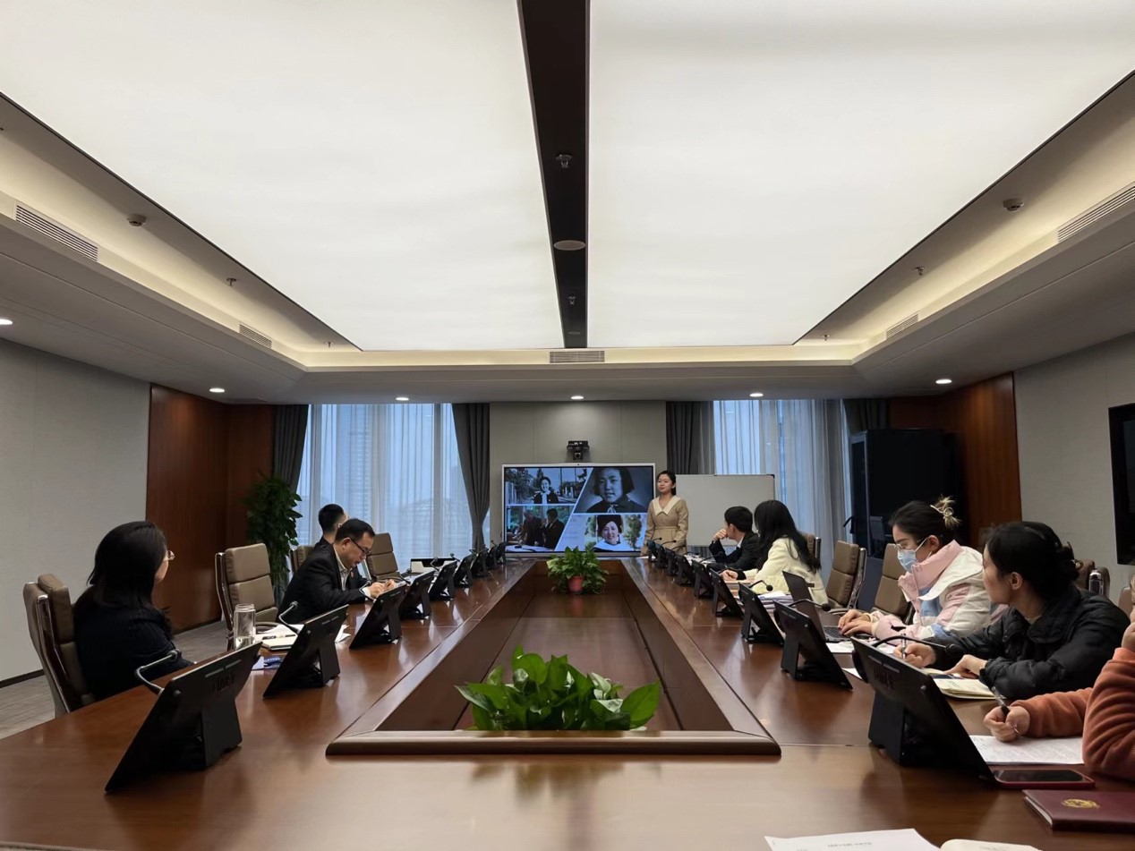 (图为魏颖在最高人民法院第六巡回法庭实习期间在青年理论学习小组做读书报告)