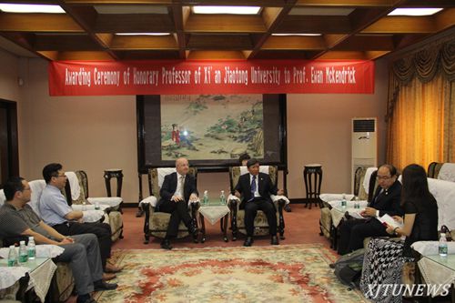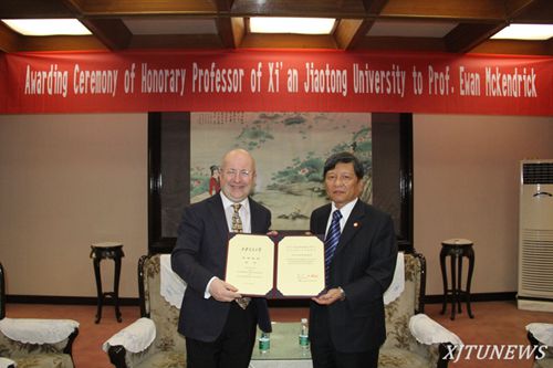 At the end of the meeting, President WANG issued the Certificate of Honorary Professor of Xi’an Jiaotong University to Prof. McKendrick.