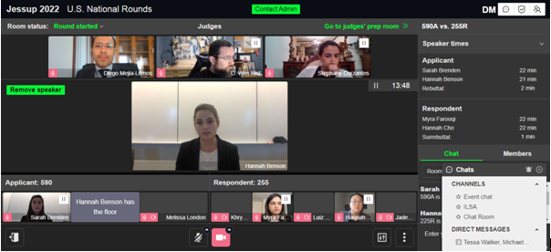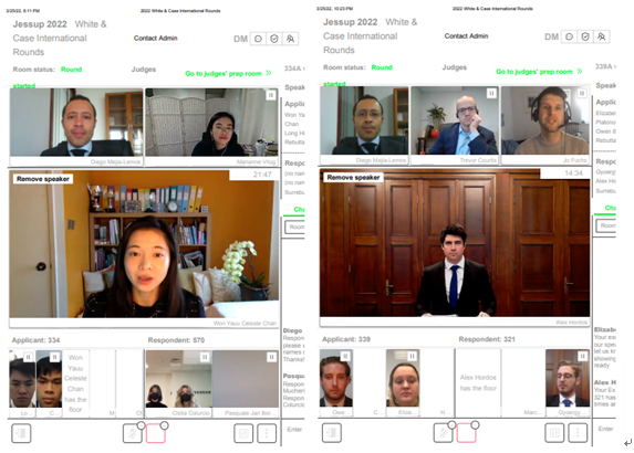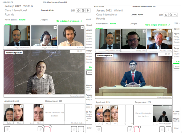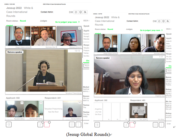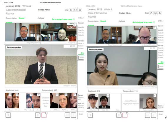 From 4 to 8 March 2022, he judged the Chinese Jessup National Rounds, up to various advanced rounds, including a Round of 16, a Quarterfinal, and a Semi-final Round. The semi-final round’s bench comprised Ms Hong Zhang (张宏), a managing partner and head of PE at Baker & McKenzie FenXun in Shanghai.